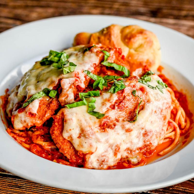 Chicken parmesan, sausage, meatball, marinara sauce and mozzarella cheese